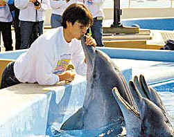 曾 因 為 拍 攝 電 影 < 戰 神 傳 說 > , 而 與 殺 人 鯨 海 威 共 事 半 年 之 久 的 華 仔 , 出 席 第 五 屆 海 洋 公 園 鯨 豚 保 護 日 , 並 即 場 與 一 頭 海 豚 親 吻 , 以 表 達 人 類 與 海 洋 生 物 , 以 致 整 個 海 洋 生 態 都 是 息 息 相 關 的 信 息 。