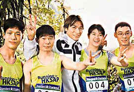 身 分 , 飾 演 一 名 在 賽 跑 中 途 站 遞 水 的 工 作 人 員