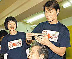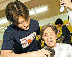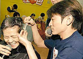 院 黃 大 仙 醫 院 , 為 一 班 長 者 義 剪 頭 髮 。