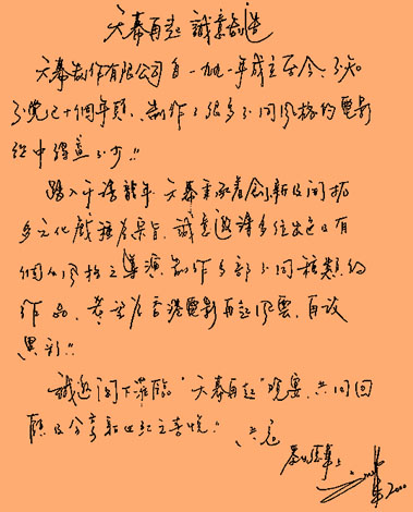 毛 筆 題 了 「 傳 媒 萬 歲 」 四 個 字 , 送 給 港 台 。